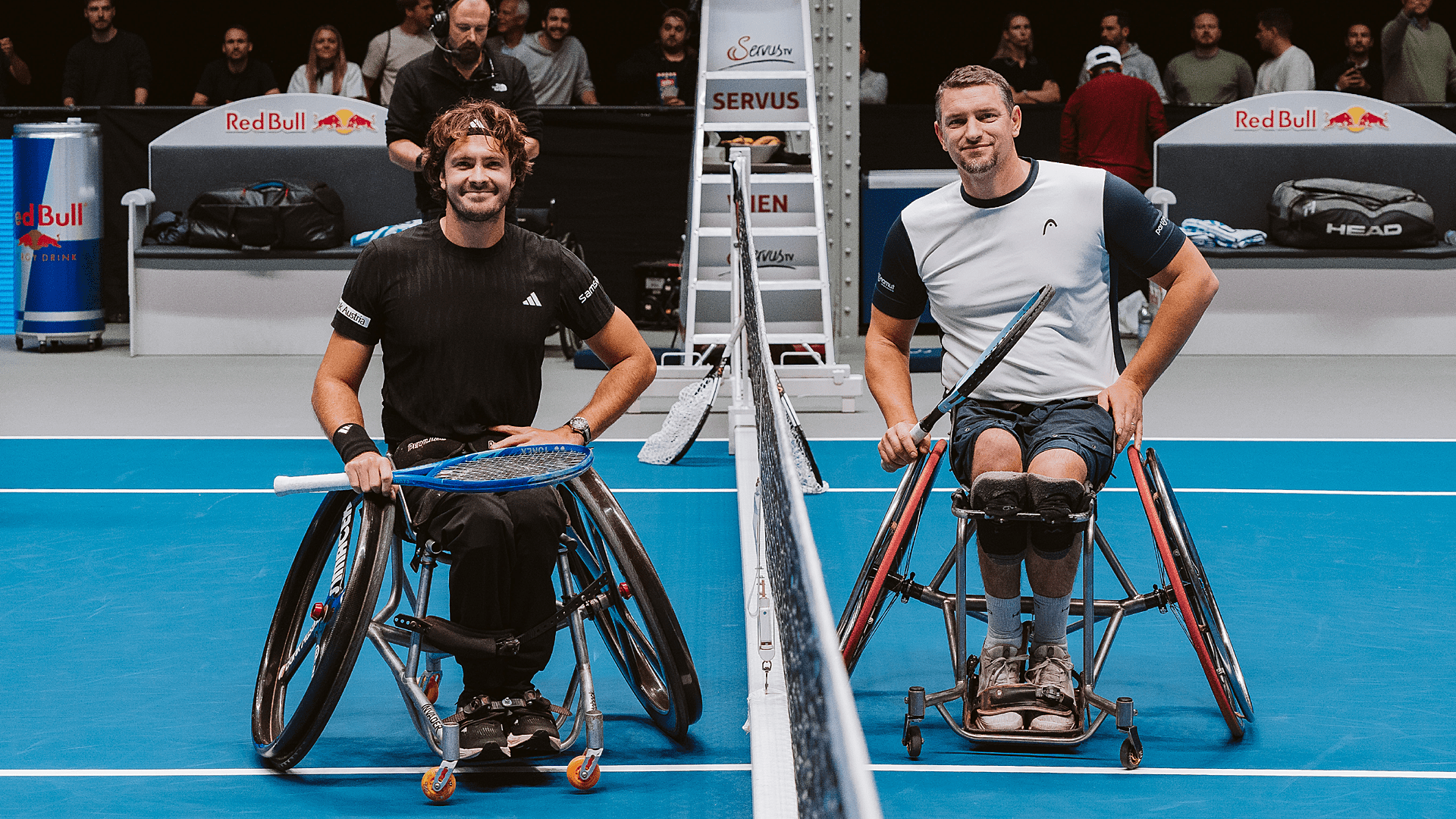 Im Rahmen der Premiere des Rollstuhl-Tennisturniers bei den Erste Bank Open wurden die Teilnehmer heute Vormittag in der Marx Halle offiziell begrüßt. Turnierdirektor Herwig Straka und Erste Bank Open-Turnierbotschafter Thomas Muster hießen die internationalen Topspieler persönlich willkommen und wünschten ihnen viel Erfolg für die kommenden Tage. "Mein erstes Turnier als Veranstalter war ein Rollstuhltennisturnier. Seit damals fasziniert mich der Sport", so Straka. "Wir hatten aus Platzgründen nie die Möglichkeit eines durchzuführen. Umso mehr freuen wir uns, das jetzt in der Marx Halle umsetzen zu können."