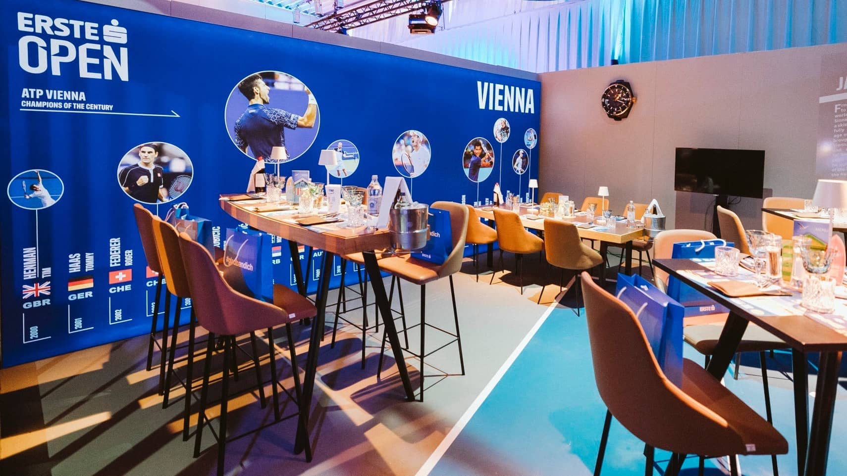 Die Erste Bank Open bieten die ideale Plattform, um Veranstaltungen wie z.B. Vertriebs- oder Info-Events sowie Mitarbeiter:innen-Schulungen für Unternehmen abzuhalten. Im Rahmen einer der führenden Sportveranstaltungen werden ideale Verbindungen zwischen Informationsaustausch und Networking geschaffen. Einzigartig: Beobachten Sie die Spieler von Ihrem Tisch aus direkt beim Training und genießen Sie eine wunderbare Zeit mit Sport, Networking und großartigem Catering!